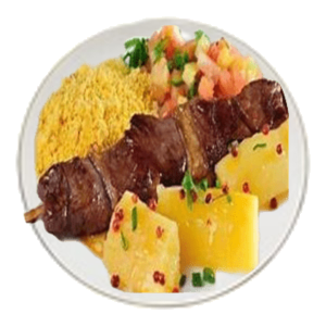 ESPETINHO COMPLETOEspeto a escolher, Farofa, Mandioca Cozida e Vinagrete