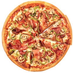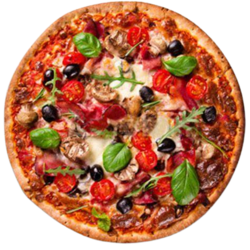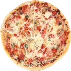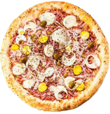 PIZZA ITALIANA (GG)Ingredientes: Mussarela, Presunto, Frango, Milho, Tomate, Molho de Tomate, Calabresa, Bacon, Azeitona.(GG) R$ 75,00