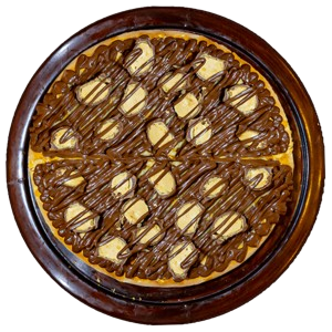 PIZZA BOMBONIERE (GG)Ingredientes: Chocolate Forneável, Bombom Sonho de Valsa e Bombom Ouro Branco Picados.(GG) R$ 70,00